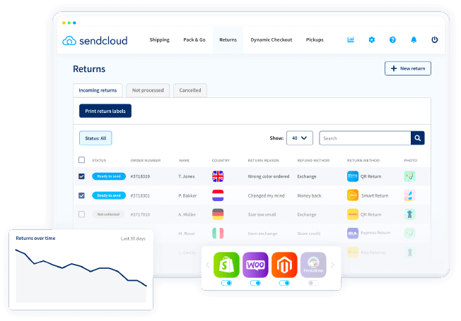 Create domestic and international returns, request returns to be cancelled and validate a return before creating the return label.