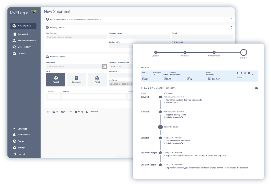 The B2B shipping platform for efficient, effortless and sustainable worldwide shipping. Sending your parcels, documents and pallets are just a few clicks away.